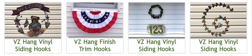 The benefits of the VZ Hang: *Simple hook design, installs quickly and easily. Holds up to 5 pounds!!! *No tools or holes to drill, does not damage your siding or finish trim. *The unique design allows you to remove and relocate many times over. *Polypropylene with UV ray inhibitors, small and nearly invisible.